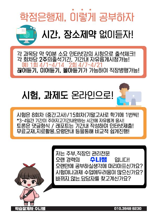 안녕하세요~ 서울사이버평생교육원 학습설계팀 쑤니쌤입니다.