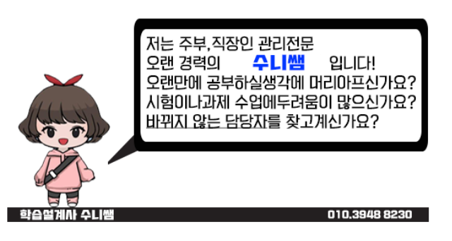 주저하시 마시고 수니쌤에게 연락주시면 되십니다.