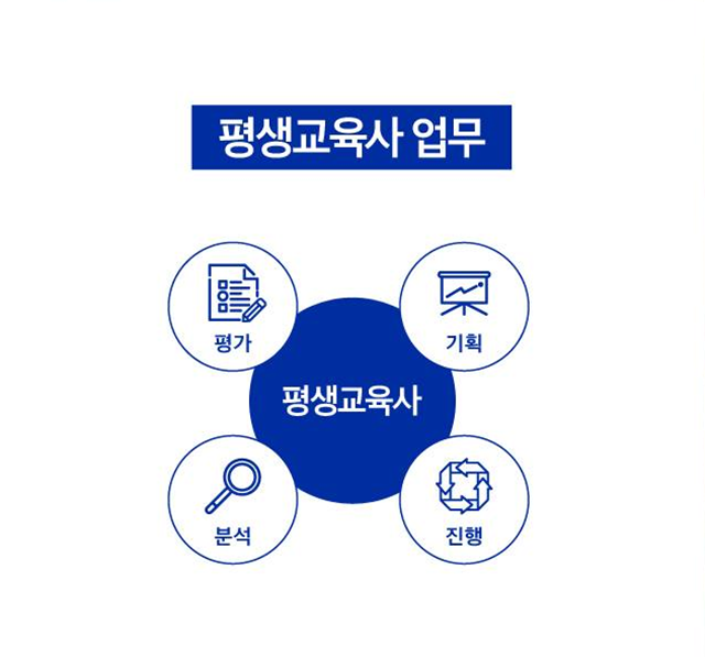평생교육의 기획, 진행, 분석, 평가 및 교수업무 등